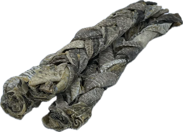 Crafted from 100% air-dried fish skin braids, our protein-rich fish braids are completely natural, containing no additives or preservatives. These low-fat delights are loaded with digestible protein, help keep your dog's teeth clean with their naturally abrasive texture, and are simply irresistible!