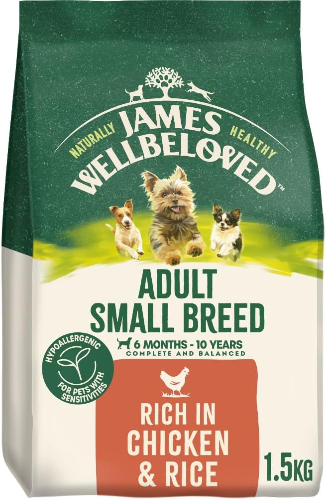 James Wellbeloved is a premium dry dog food, expertly crafted with nature's most nourishing ingredients and paired with delicious protein for unbeatable taste. Designed specifically for your small breed dog, our smaller kibble size ensures that meal time is a delight, making it easier for them to chew and digest. You can trust that every bite contributes to a balanced diet- one that not only satisfies there taste buds but also supports there over all health and wellbeing.