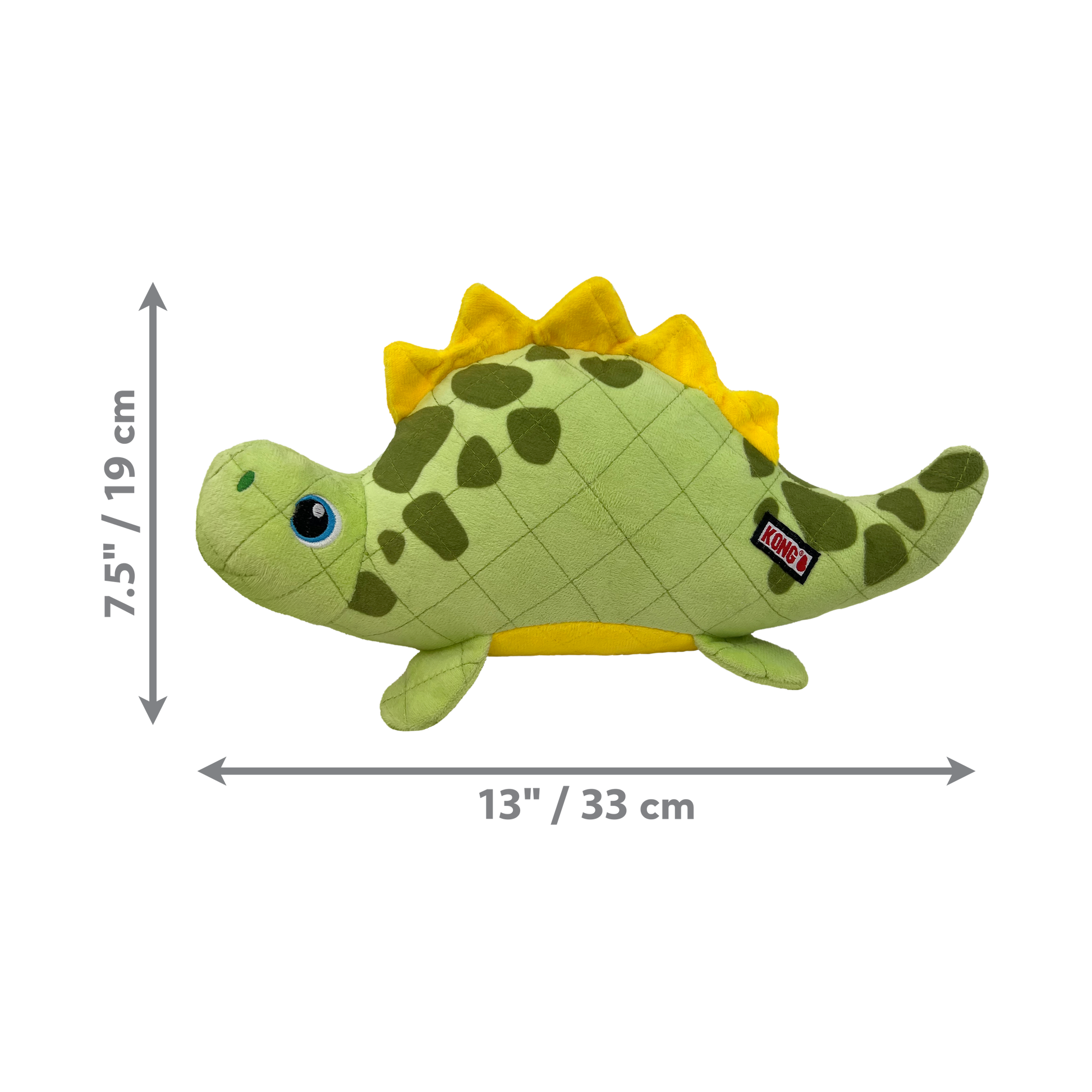 KONG Dynos' rounded bellies make them roll and spin on the ground, creating eye-catching moves that get dogs excited for Jurassic-style games of fetching and tugging. The big squeaker triggers their hunting instincts and keeps the prehistoric play going. Plus, their plush exterior is lined and cross-stitched for some lasting fun indoors.