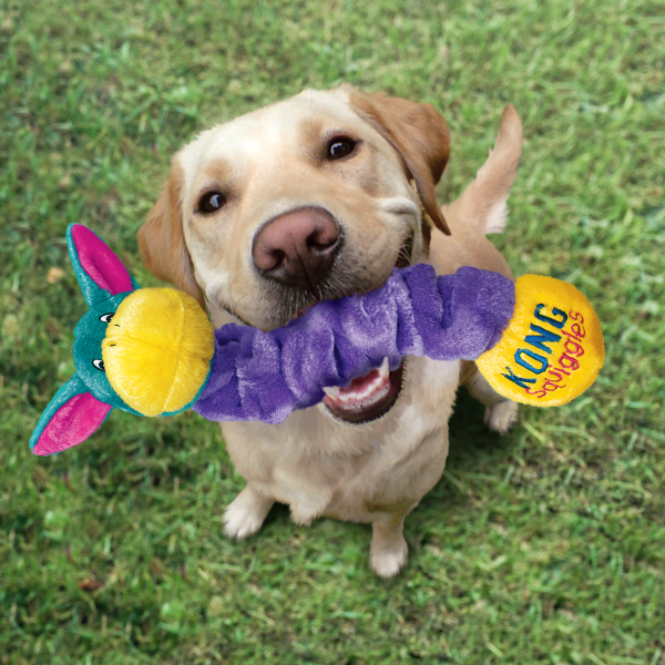 The KONG Squiggles offer an exciting combination of stretchiness, flexibility, and squeaky delight for dogs. Available in a delightful range of four charming characters, these vibrant toys boast a long, stretchy body and squeakers at both ends. Crafted with minimal stuffing to reduce mess, your dog will thoroughly enjoy shaking and flapping our Squiggles for endless entertainment.